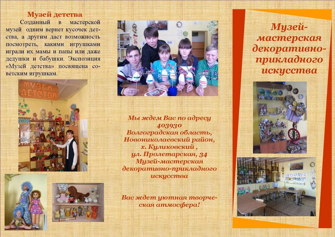 Музей-мастерская декоративно-прикладного творчества (рук. Е.А.Филипова, старший методист)