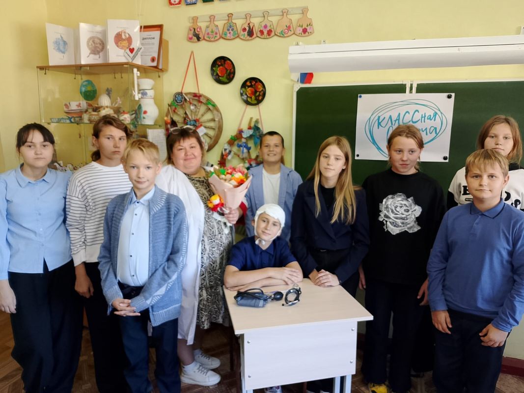 В рамках профориентационной работы медицинской направленности в Куликовской школе состоялась встреча с фельдшером Куликовского ФаПА Скворцовой М.А. и учащимися 6 класса.