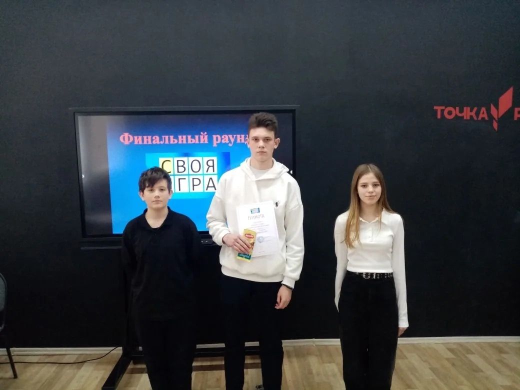 Сегодня в "Клубе интеллектуальных игр" прошла 1 игра финального турнира по "Своей игре". За право играть в финале сражались трое юных интеллектуалов: Харитонова Варвара, Благин Кирилл и Воржев Максим.